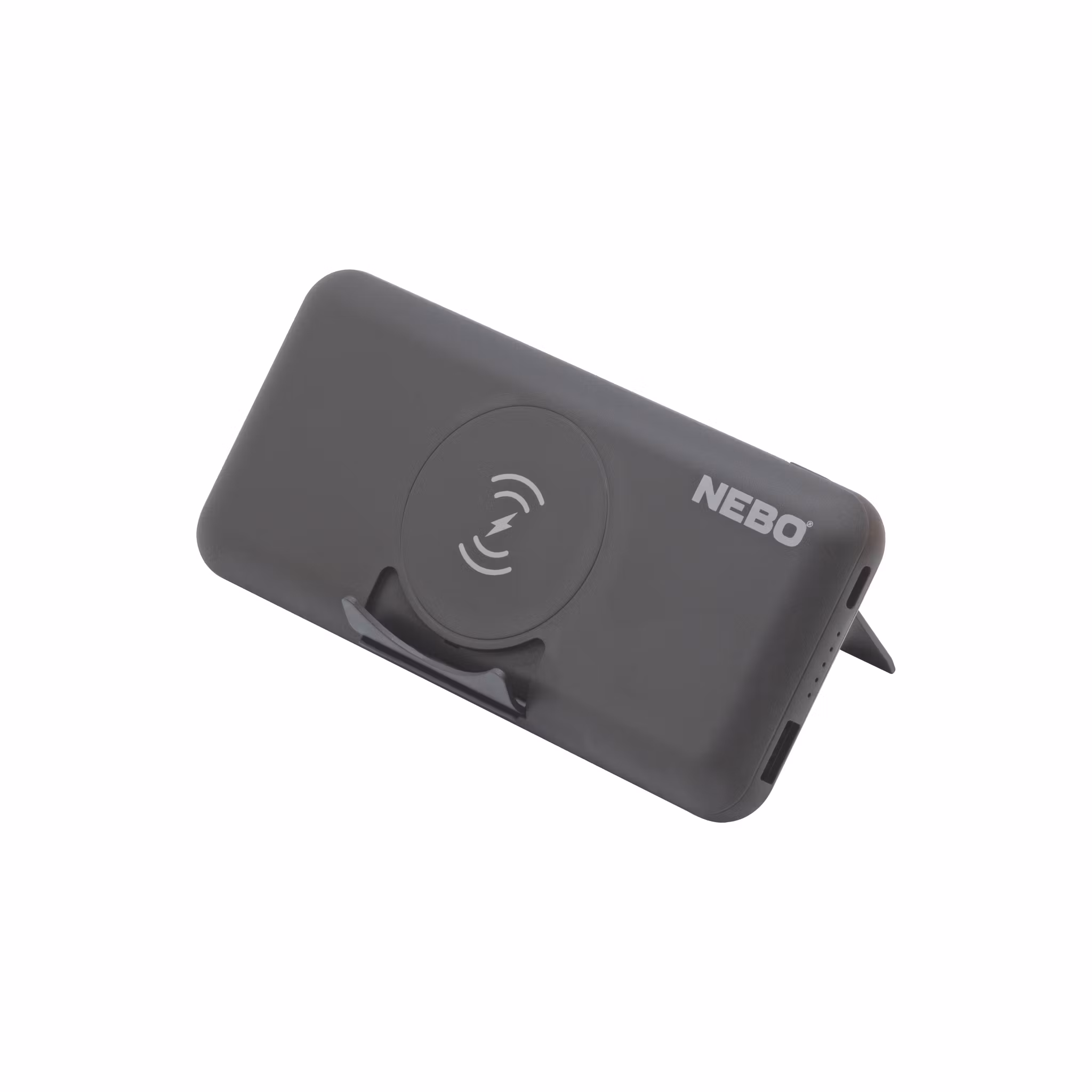 Trött på trassliga kablar och letande efter uttag? NEBO Powerbank 10K Wireless har en bekväm hållare för trådlös laddning, så du kan helt enkelt