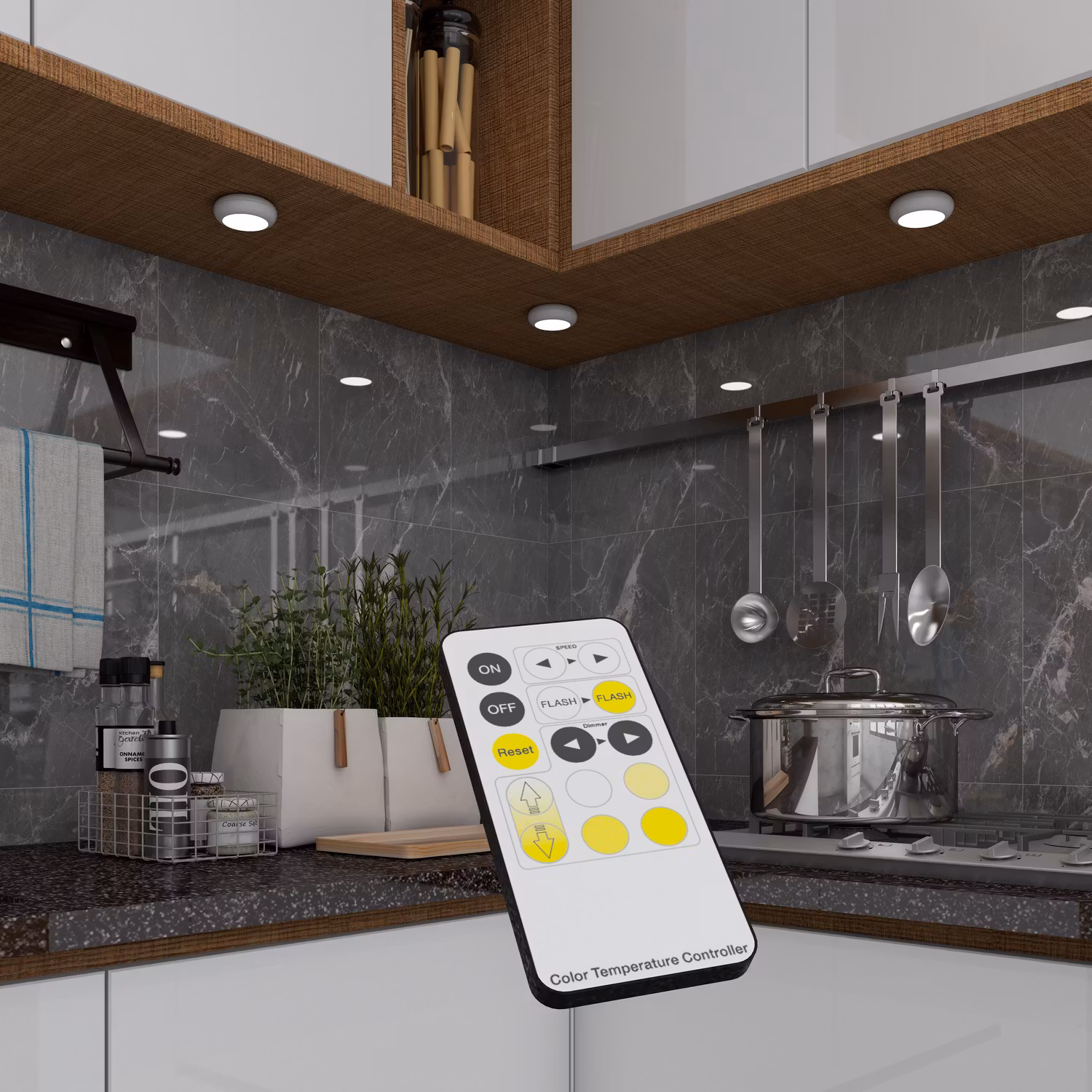 Tänd, släck och justera ljuset precis som du vill! Spot On-lamporna kan styras direkt via lampan eller med den medföljande fjärrkontrollen med upp till 15 meters räckvidd. Anpassa enkelt färgtemperaturen mellan varmt 2700K och kallt 6500K för att skapa rätt känsla för varje tillfälle.