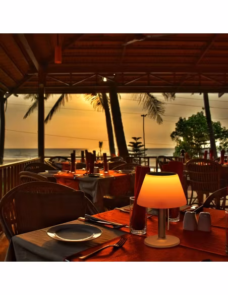 Soldriven LED-bordslampa. Välj mellan två olika färgtemperaturer, 200 lumen vitt eller 15 lumen varmt sken. IP66 klassad för inomhus- och utomhusbruk. Skärm i A