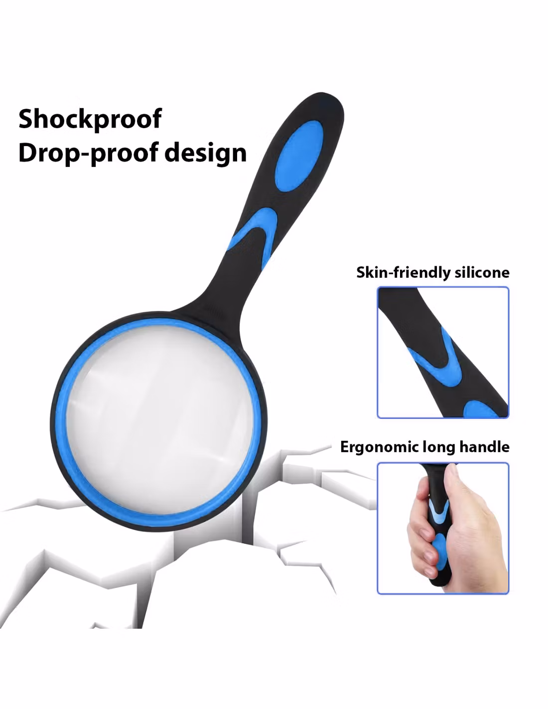 Handtaget är tillverkat av halkfritt gummi som är mjukt och bekvämt, dessutom är linsen välbalanserad för att förhindra trötthet i handleden. Gummiramen skyddar glaslinsen från skador.